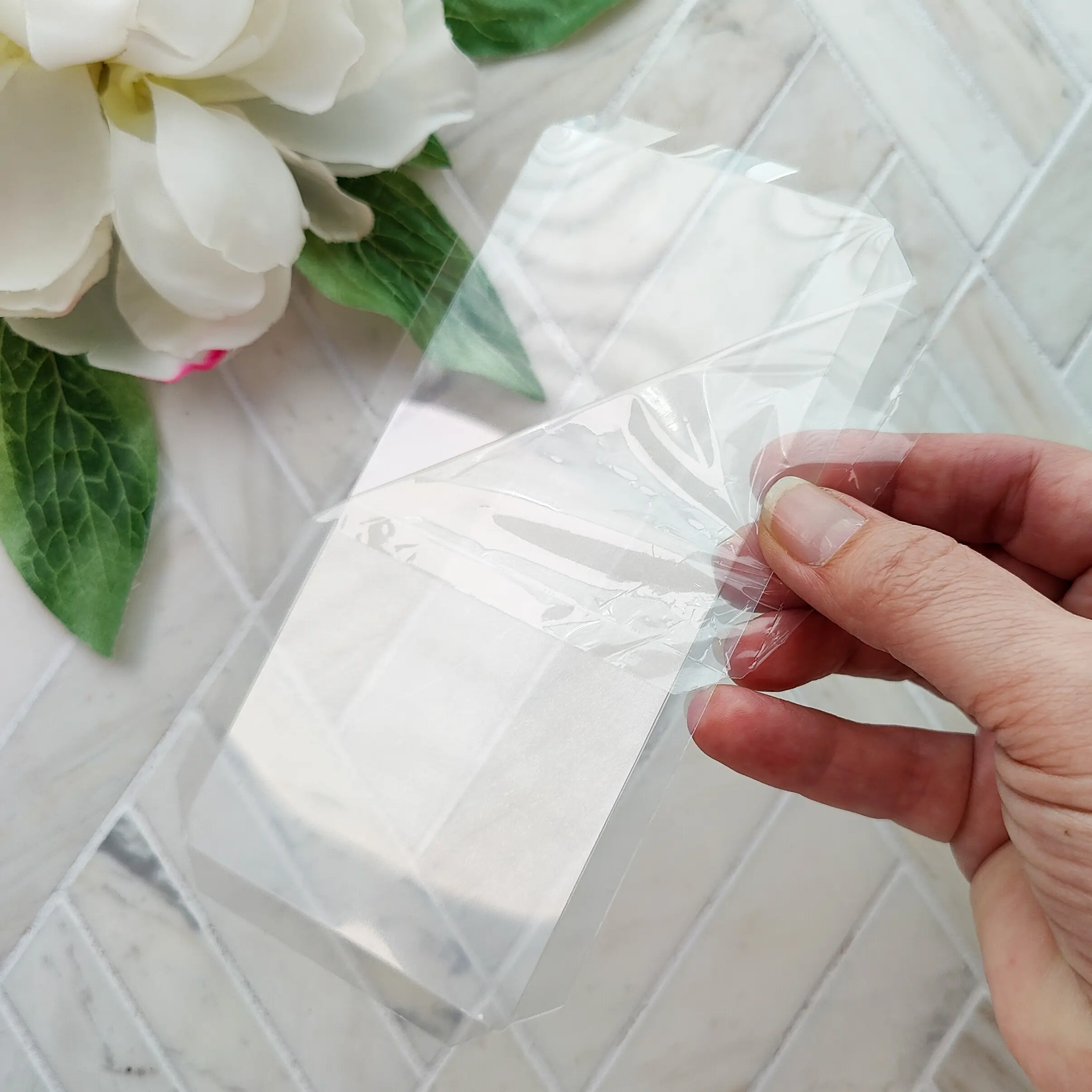 Five pack of Mini Slimline size shaker covers from Trinity Stamps. Use these covers to create quick and easy infinity shaker cards! Simply apply adhesive to three sides and adhere to a 2-3/4″ x 5-3/4″ panel. Fill with glitter, gems, or shaker bits of your choice. Then seal the fourth side. Adhere to a mini slimline card base. Don’t forget to remove the protective film.