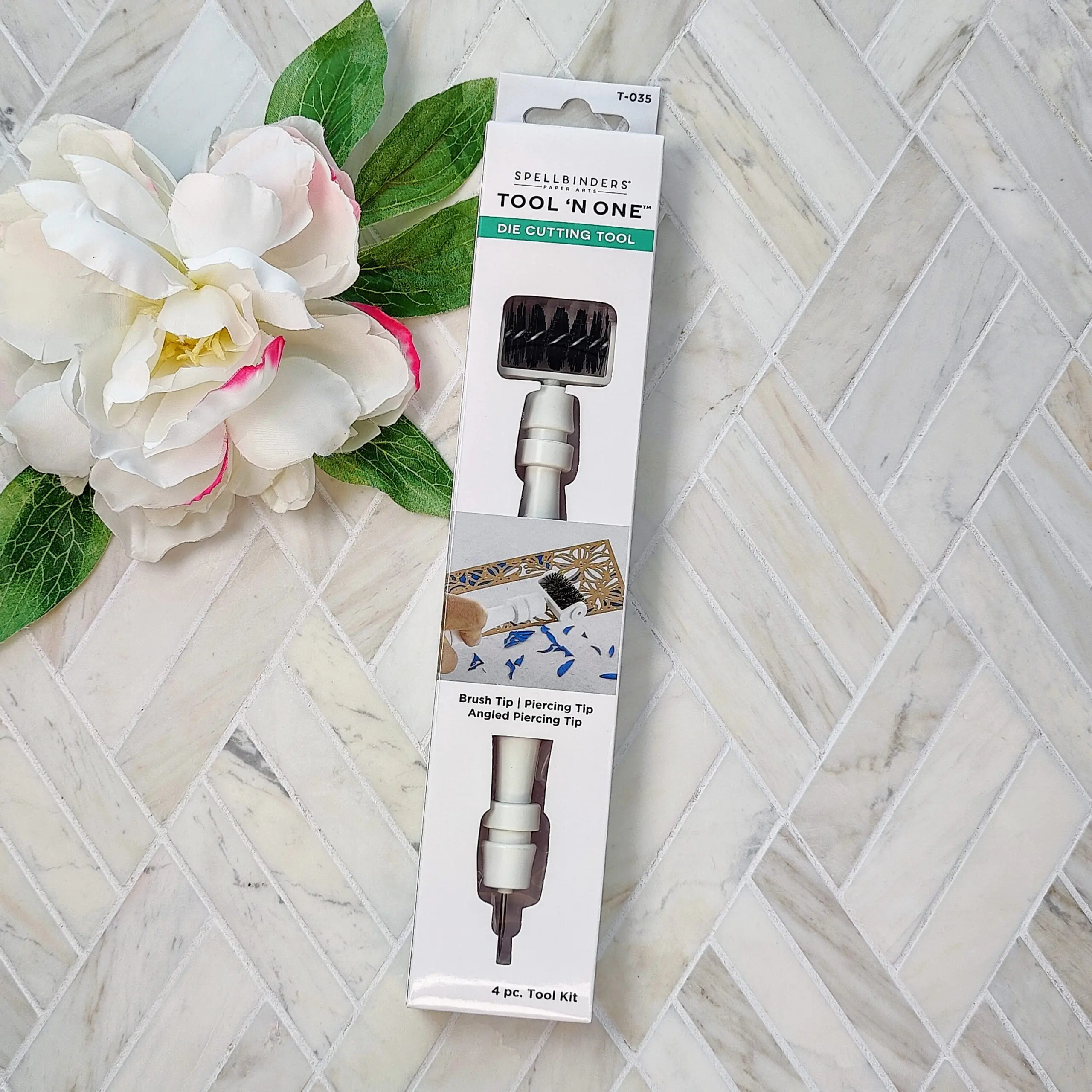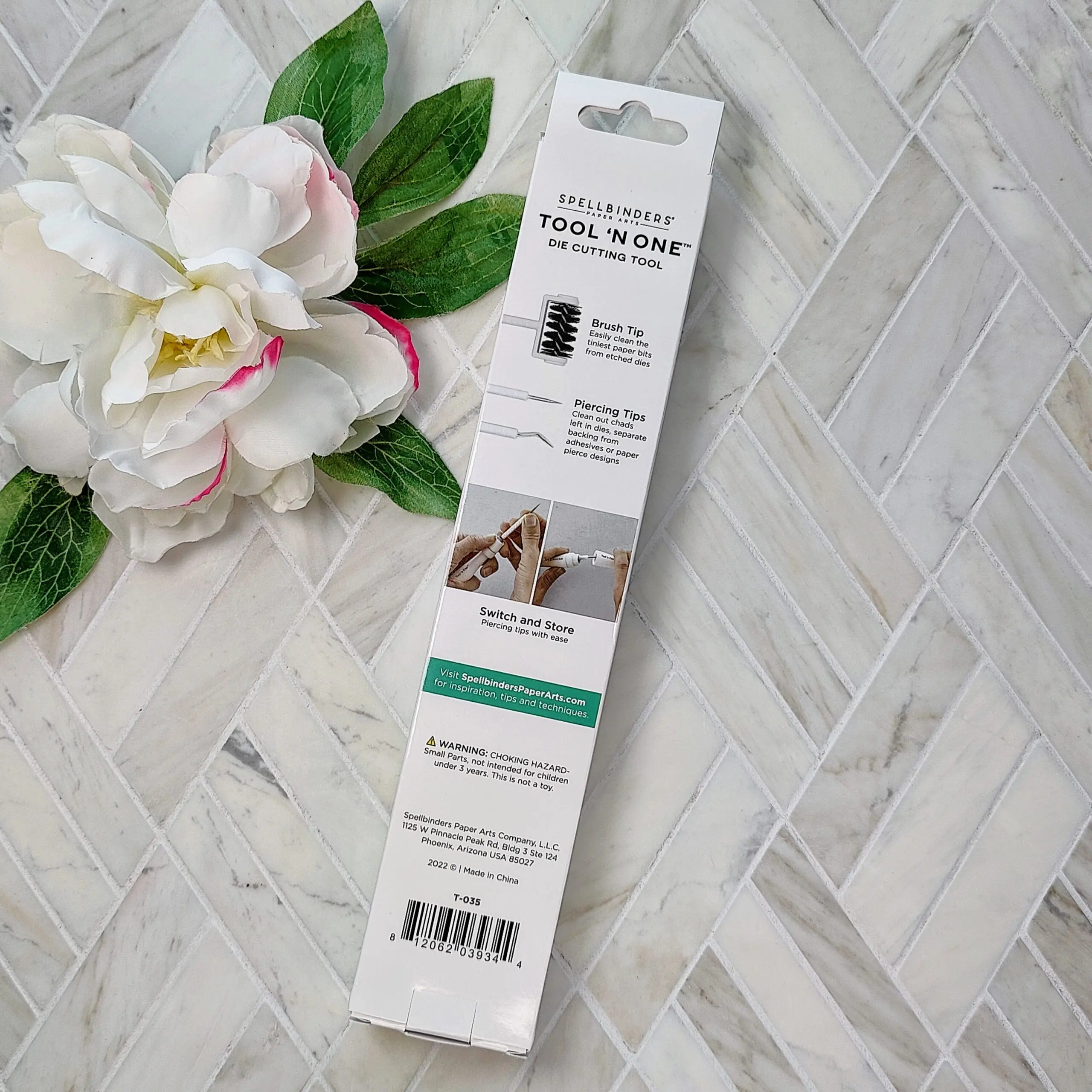 The Spellbinders Tool ‘n One is a die cutting essential. Use it for piercing, paper removal and more. Store the Tool ‘n One attachments within the handle’s hollow body. The tool easily crosses over for other hobbyists using small pieces and parts such as airplane models and miniature houses.